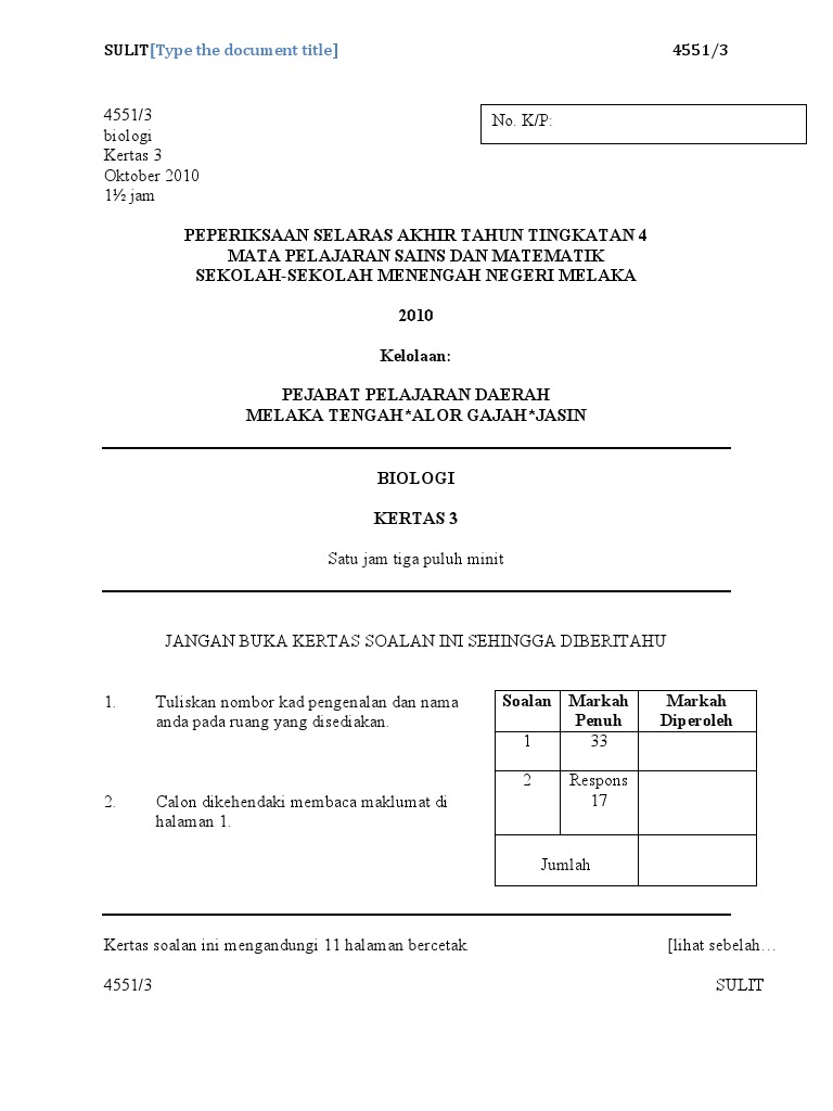 Contoh Soalan Dan Jawapan Biologi Kertas 3 Tingkatan 4 Lamaran L